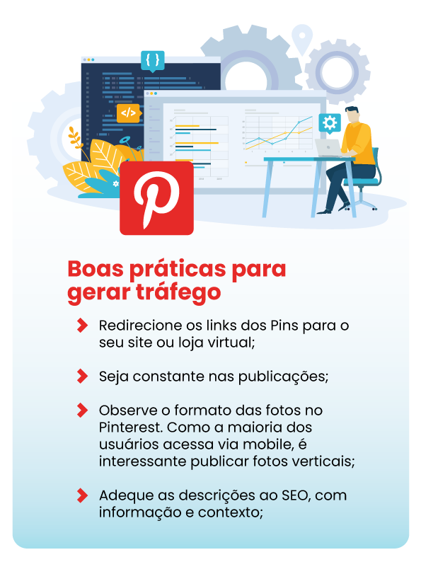O Pinterest também fornece uma página com tendências e insights, que podem ajudar a promover o tráfego e encontrar seu público-alvo. Aproveite essa ferramenta e outras estratégias de marketing digital nessa rede social para alavancar o seu negócio.