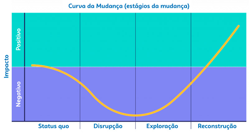 O momento da disrupção é importante para qualquer projeto, pois o medo de avançar pode gerar paralisia e afetar a continuidade do projeto de mudança. Além disso, as pessoas podem começar a “sabotar” o projeto para fugir da possibilidade de mudança.