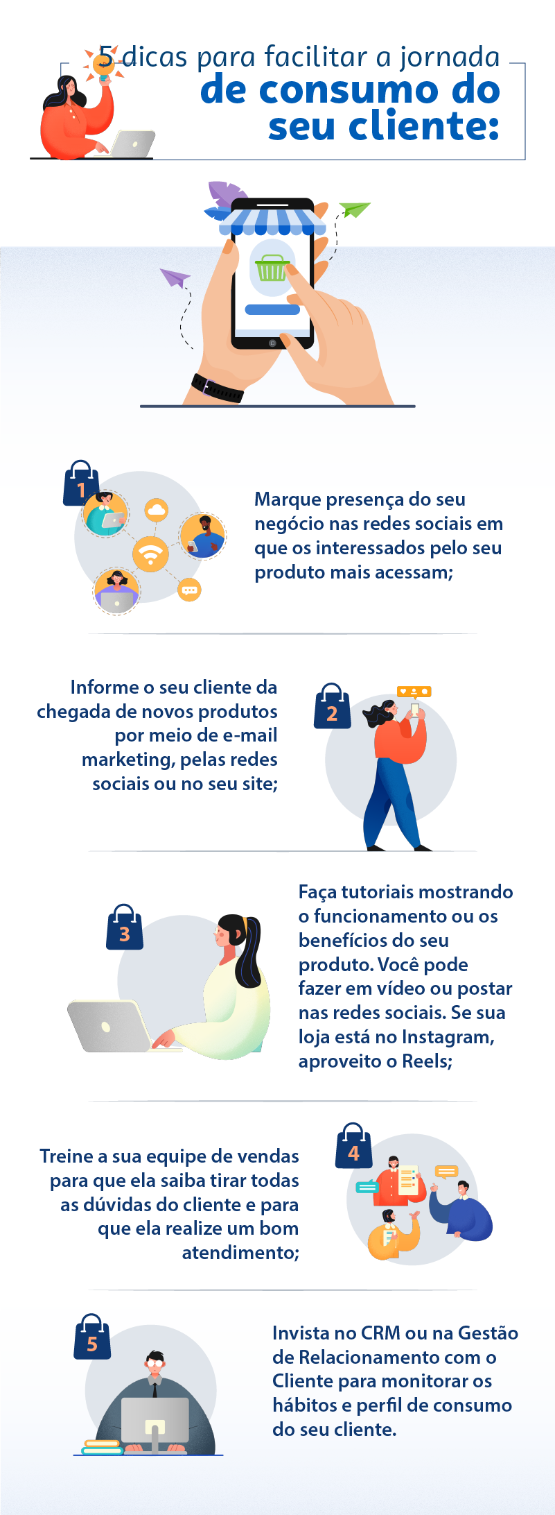 O mapeamento da jornada de compra é essencial para que o varejista escolha as melhores ações estratégicas para estimular o cliente a seguir dando passos até a finalização da compra. Estamos falando de uma ferramenta estratégica para atrair e conquistar clientes. Logo, para aumentar as suas vendas.