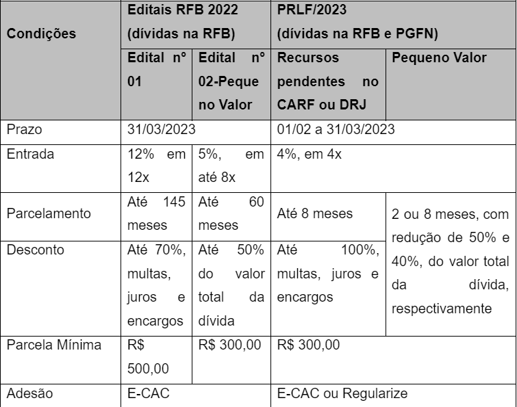 2)Programa Litígio Zero (PRLF - Programa de Redução de Litigiosidade Fiscal) - Portaria Conjunta PGFN/RFB nº 1 de 12 de janeiro de 2023