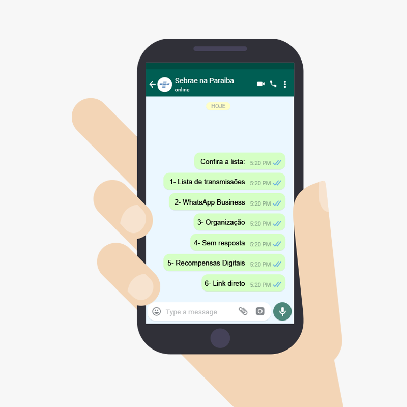 O WhatsApp é um aplicativo de mensagens bastante usado pelo brasileiro. De acordo com a pesquisa “Transformação Digital nas MPE”, realizada pelo Sebrae em 2018, 66% das empresas do estado da Paraíba estão usando o WhatsApp para se comunicar com os clientes e 51% acessa o Facebook.