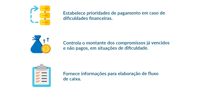 - Conhecer o montante das contas já vencidas e os respectivos períodos de atraso, bem como tomar providências para a cobrança e o recebimento dos valores pendentes.