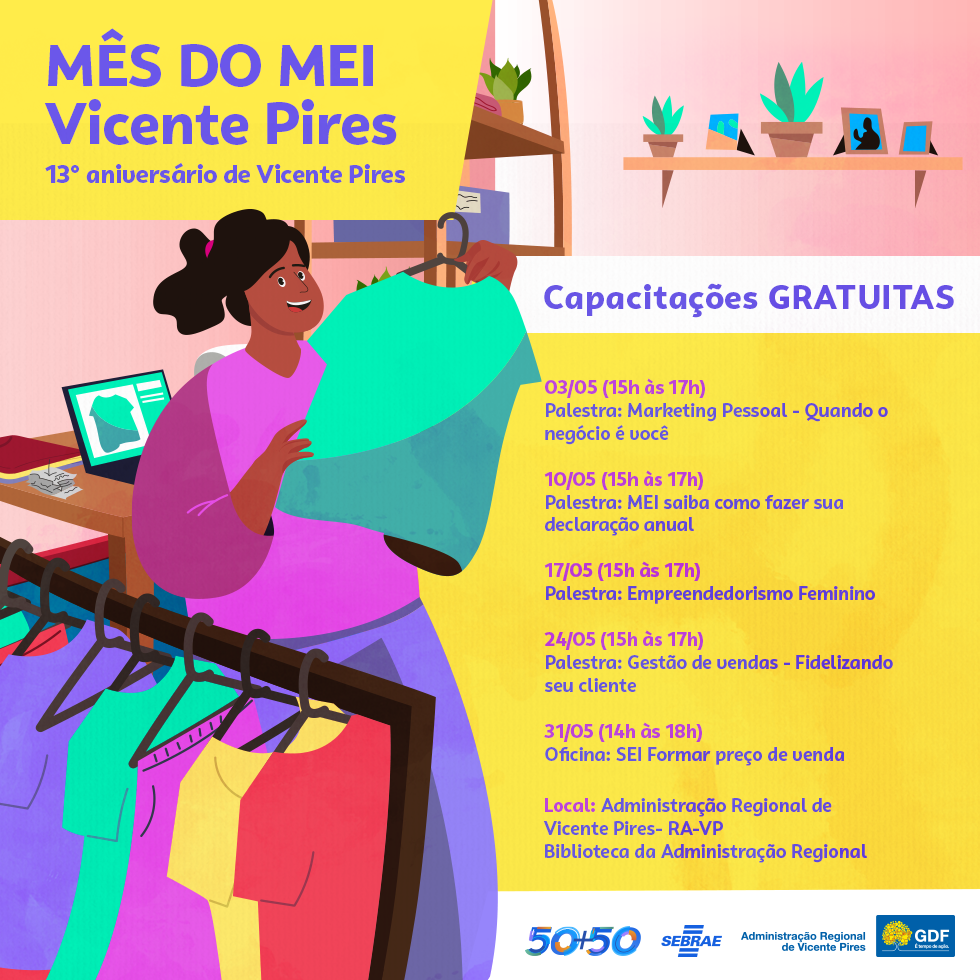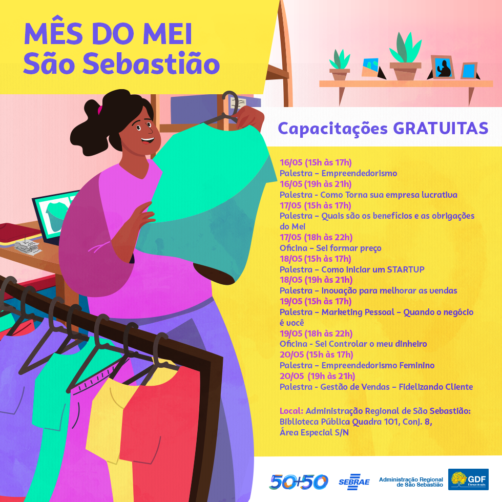 Aqueles que já são Microempreendedores Individuais (MEIs) e também aqueles que estão interessados em se tornar um terão uma grande oportunidade durante o mês de maio. Trata-se do mês do MEI, iniciativa desenvolvida pelo Sebrae DF, e que ofertará capacitações e atendimentos gratuitos com a finalidade de incentivar o empreendedorismo.