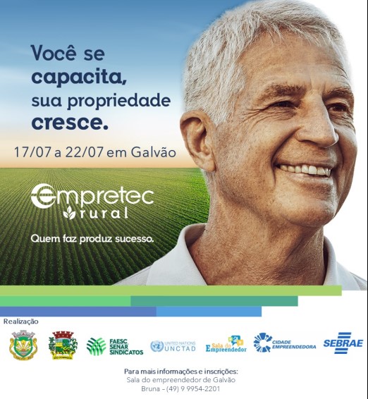 O prefeito de Galvão, Edmir Edi Dalla Cort, frisa que “o Empretec Rural é uma solução que reforça a parceria entre a Administração Municipal e o Sebrae/SC, por meio do Programa Cidade Empreendedora, e traz incentivo aos agricultores para fortalecê-los para que invistam no município”, enfatiza.
