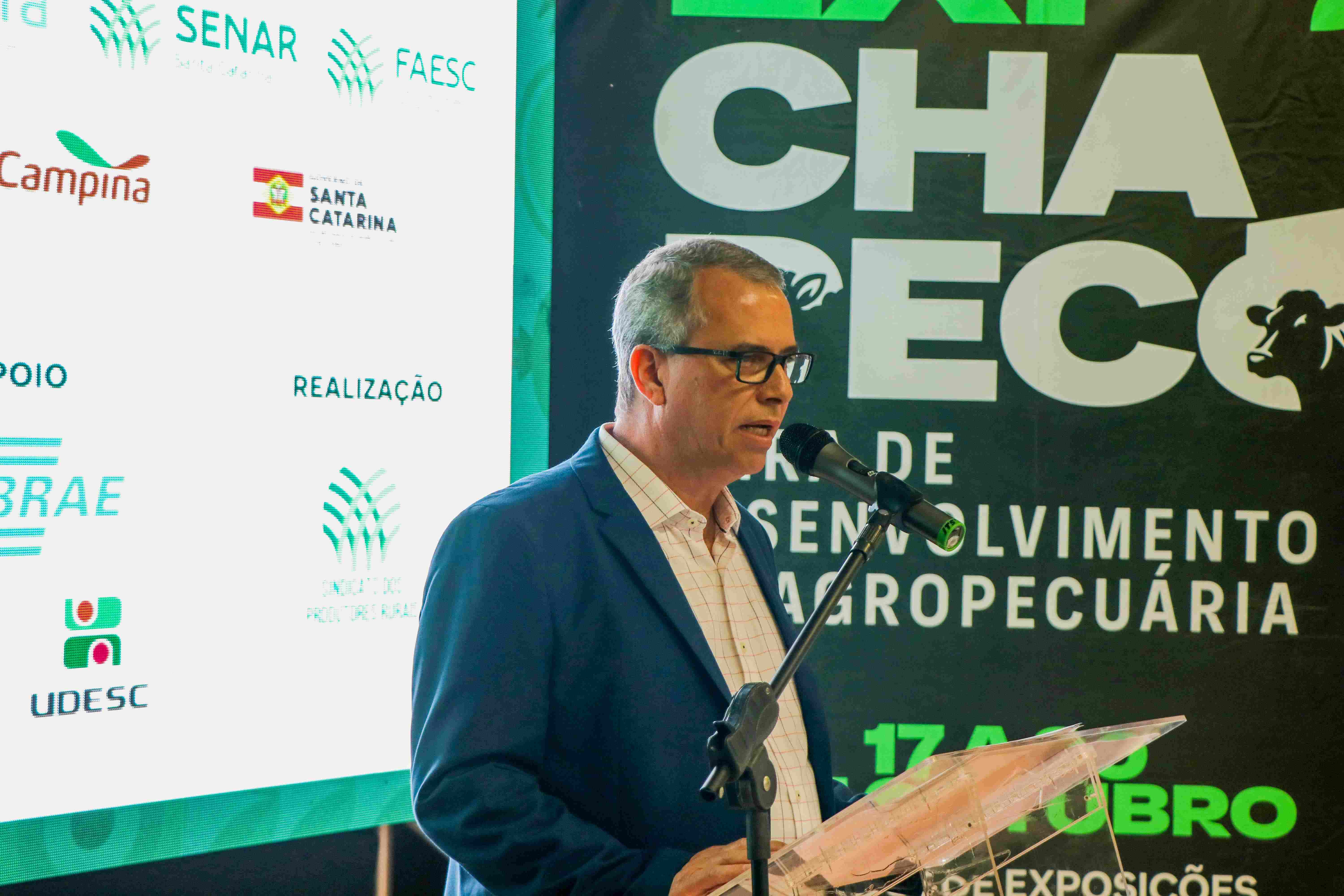 O secretário da Agricultura do Estado de Santa Catarina, Valdir Colatto, valorizou a importância da expo-feira para as cadeias produtivas (Foto: Karina Ogliari/MB Comunicação).