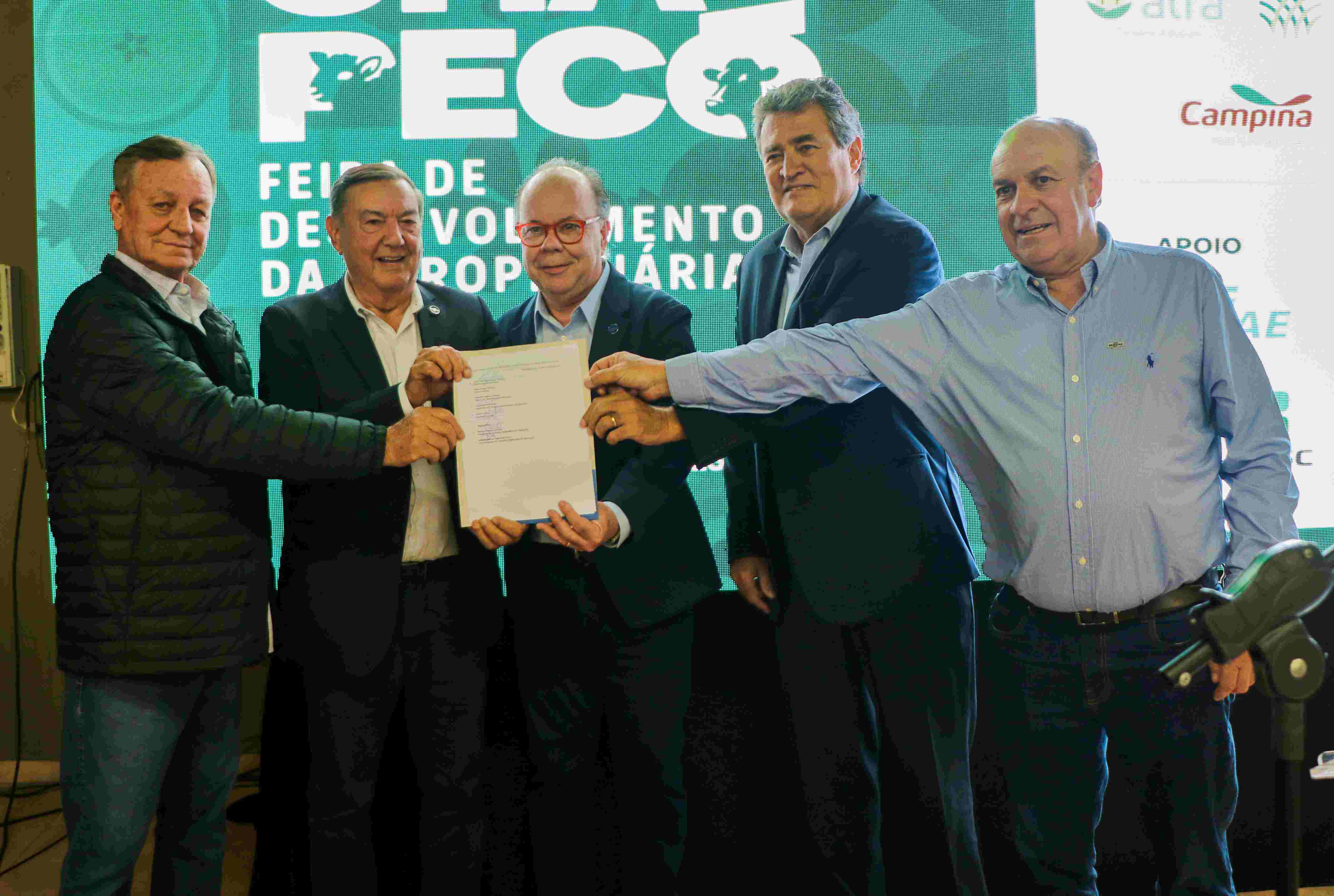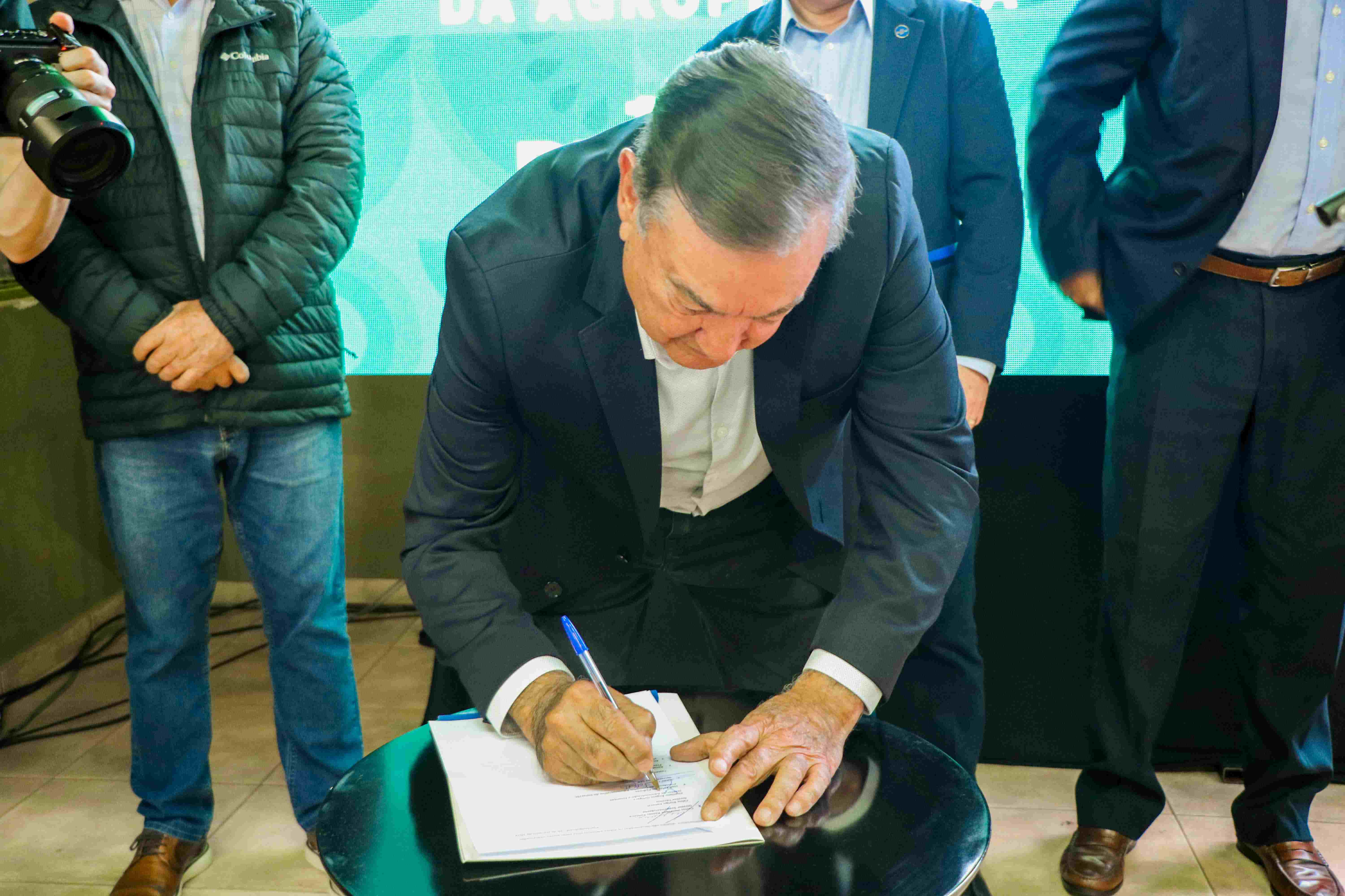 Para o fomento e o desenvolvimento da cadeia produtiva da ovinocaprinocultura de Santa Catarina foi assinado o termo de cooperação entre Senar/SC, Sebrae/SC e Secretaria da Agricultura e Pecuária (Foto: Karina Ogliari/MB Comunicação).